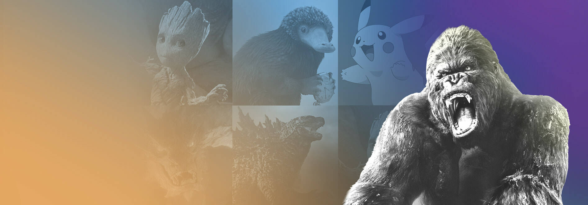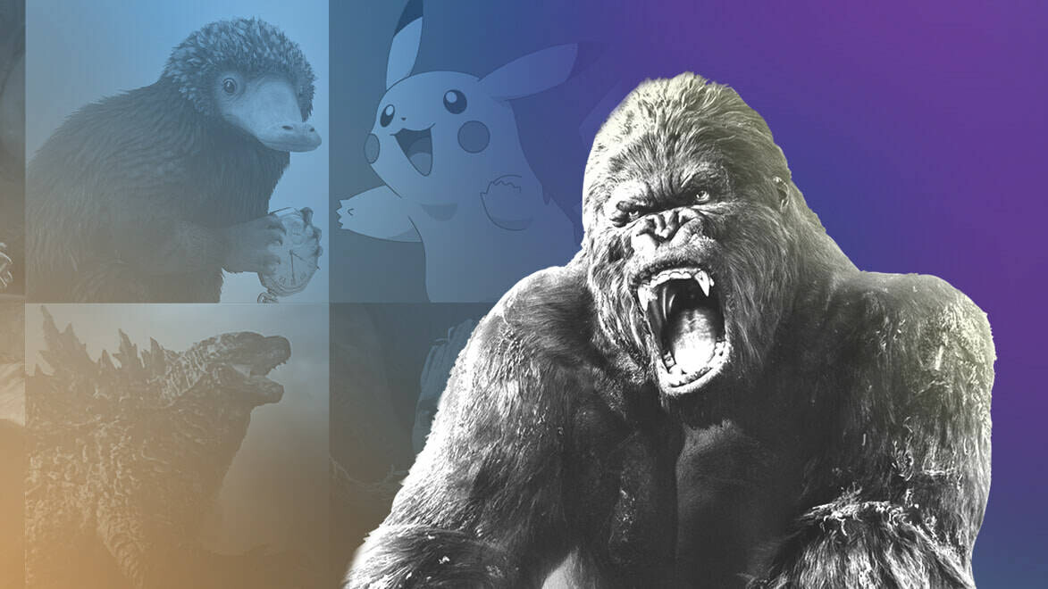 Кинг Конг, Годзилла, Гремлины, Грут, Пикачу и другие покемоны, Смауг и другие кинодраконы, Нюхлер и те, кто живут во вселенной Джоан Роулинг, и других киновселенных и мн.др.